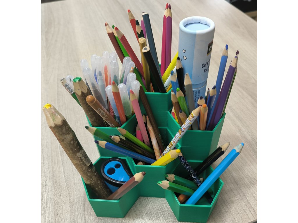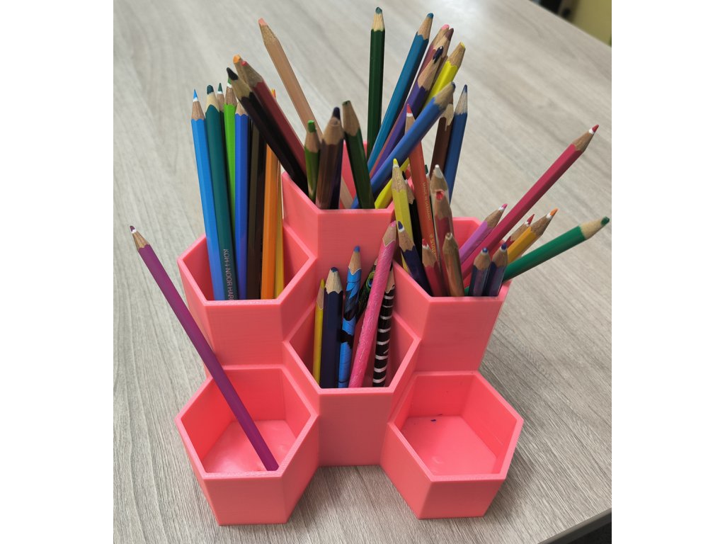 3 nejvyšší hexagony mají vyvýšené dno. Nemusíte se tak bát, že v nich tužky zapadnou.
