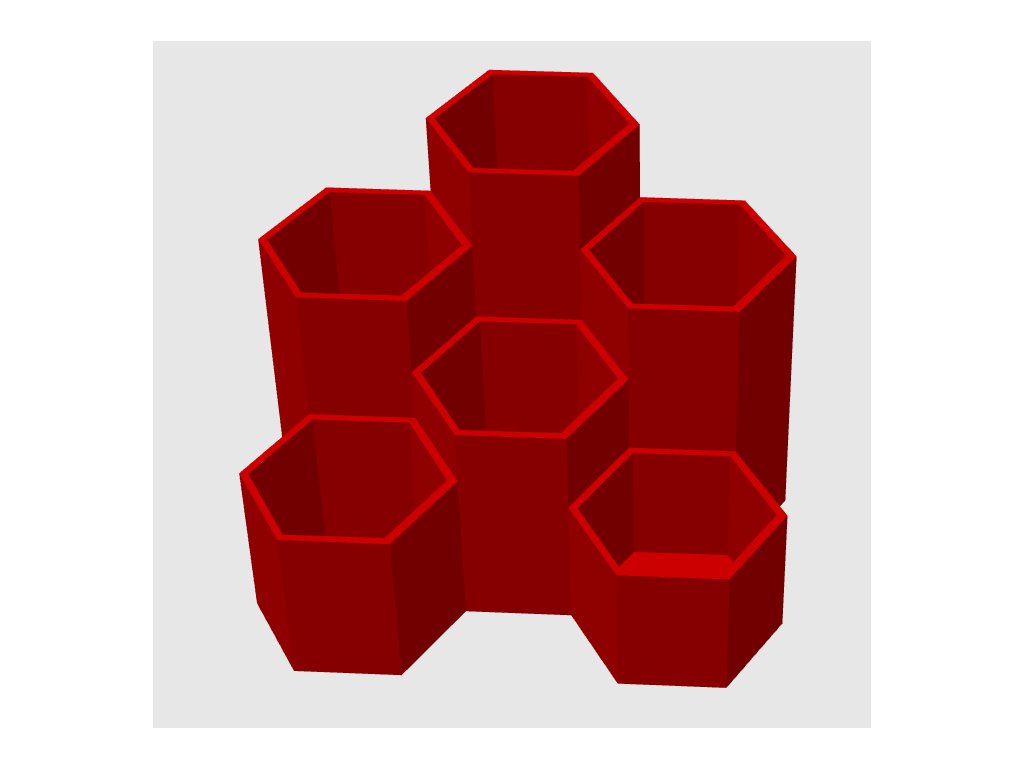 K dispozici je zde celkem 6 hexagonů o různých hloubkách. Ve stojánku si tak uložíte jak nové dlouhé pastelky, tak i hodně krátké zbytky, případně ořezávátka a gumy.